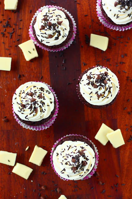 Muffinssien taikina oli helppo, sillä aineet vain sekoitettiin keskenään. Maku oli tuoreeltaan suklainen ja makea, mutta tuorejuusto-kermavaahtokuorrutus laimensi makeutta jonkin verran. Mitään lemppareita näistä ei kuitenkaan tullut. Tuoreena olivat ihan hyviä, mutta jo seuraavana päivänä pohja oli makuuni liian tiivis. Paremman pohjan saisi käyttämällä vaikkapa mielettömän mehevää suklaakakkupohjaa. Tuo tuorejuusto-kermahässäkkäkään ei pelastanut näitä, ehkä päälle olisi sopinut peräti jokin suklaisempi juttu.. No mutta tulipahan koitettua. Ja vaikka ei oikein istunut omaan makuuni, niin kyllähän nämä esikoisella maistui ihan urakalla :)